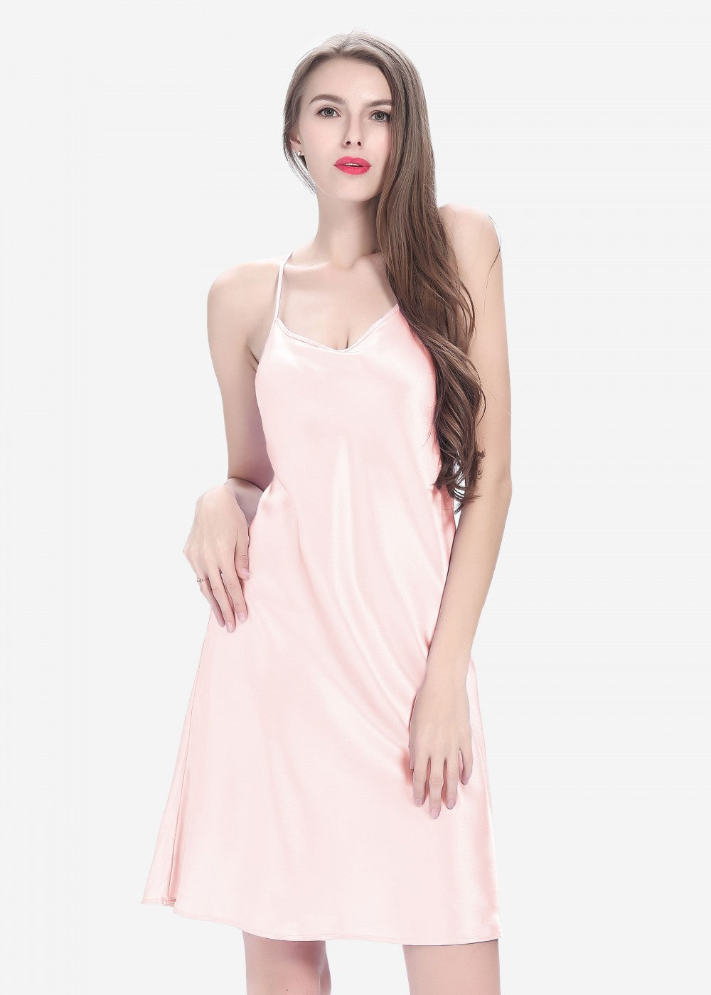 Luxurious, refined, unforgettable, all in this Short nighty. Delicately poised creates a sexy bodyline for you. The glamour is seductively evident in its attractive shape and style. 5 sumptuous colors are available. Relaxation has never been more fabulous!